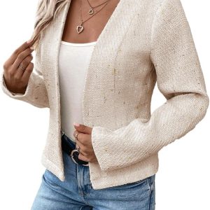 Be the first to review “2024 Summer Cropped Collarless Blazer Lightweight Fully Lined Open Front Elegant Petite Work Office Jackets”