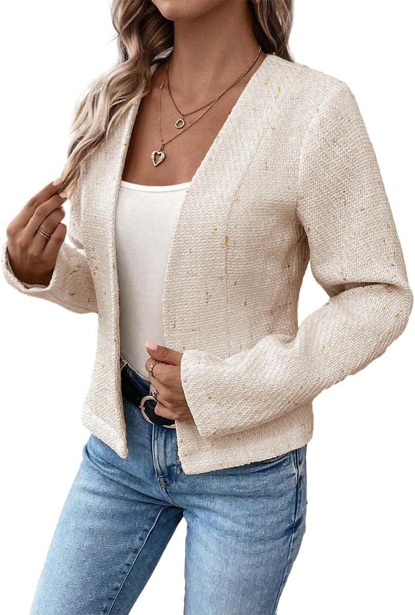 2024 Summer Cropped Collarless Blazer Lightweight Fully Lined Open Front Elegant Petite Work Office Jackets