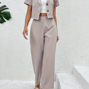 Be the first to review “Solid Color Botton Two Piece Blazer Set, Elegant Lapel Long Sleeve Blazer & Pants For Office & Work, Women’s Clothing”