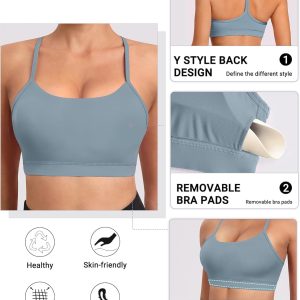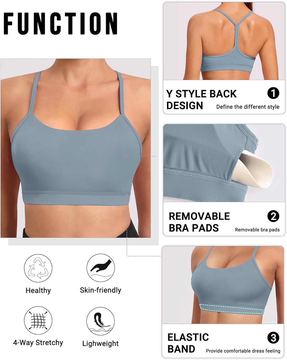 Spaghetti Strap Padded Sports Bras for Women – Y Back Yoga Workout Tops (3 Pack)