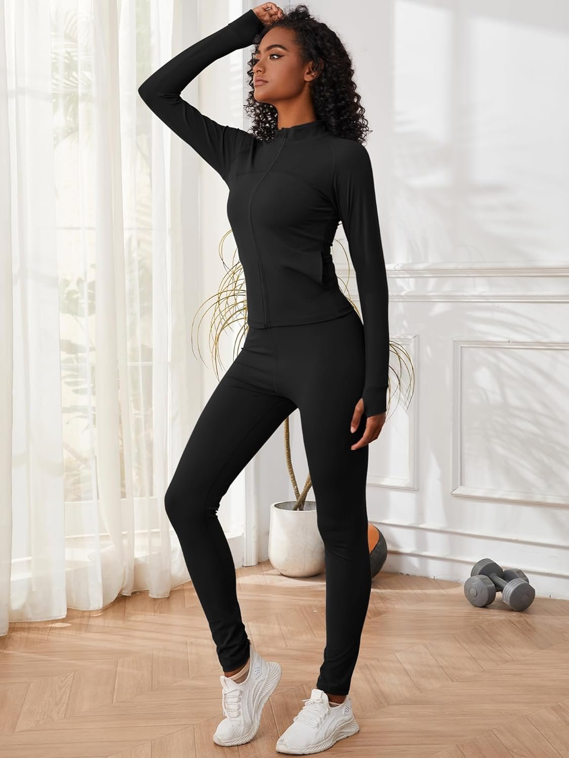 Two Piece Outfits for Women Workout Sets Bodycon Tracksuit Long Sleeve Zip Up Hoodie Jacket Jogger Sweat Pants Set