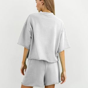 Women’s 2 Piece Outfits Lounge Sets Crew Neck Short Sleeve Pullover Tops High Waisted Shorts Tracksuits