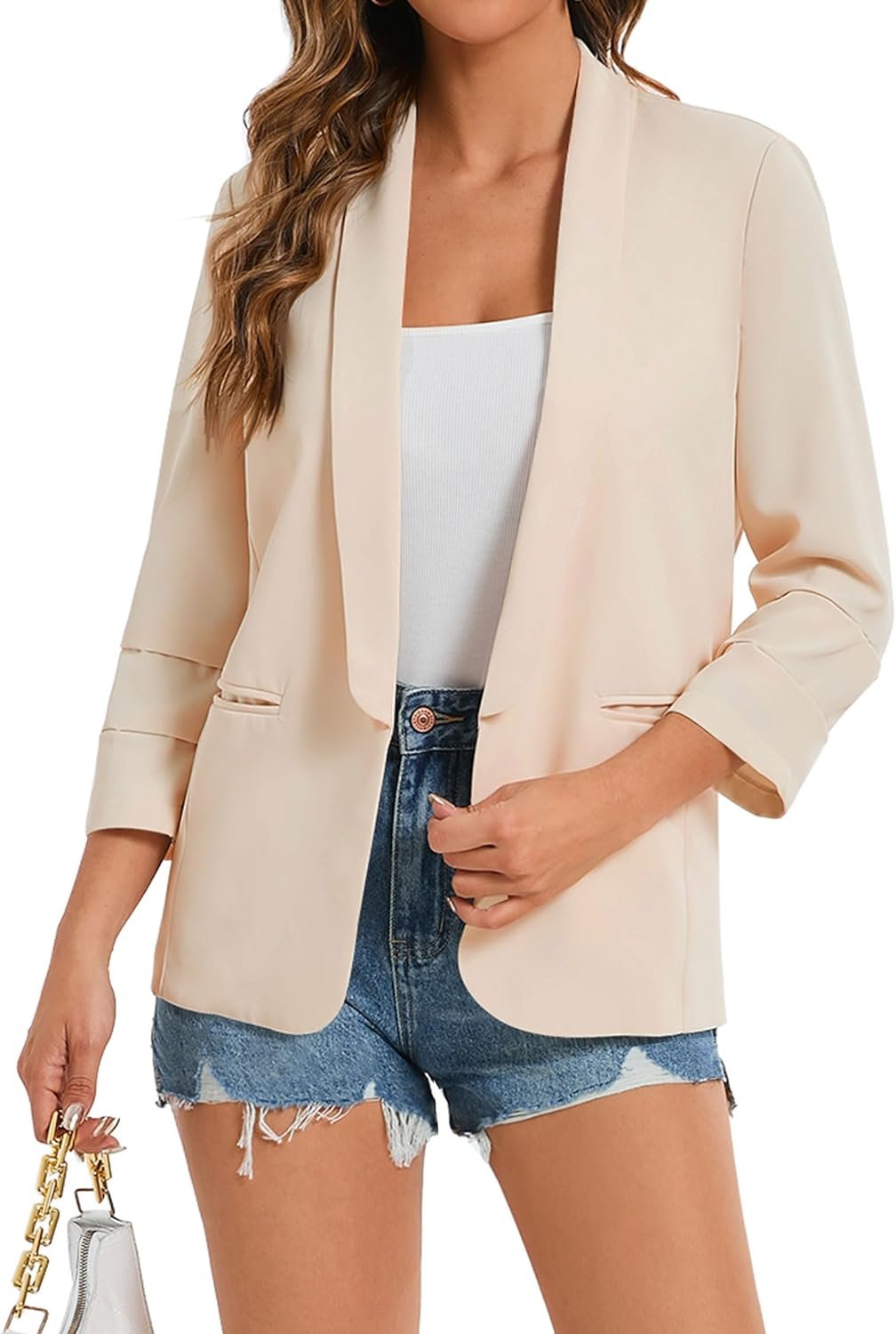 Women’s 2024 Casual Blazers 3/4 Sleeves Lightweight Business Work Blazer Jackets with Pockets