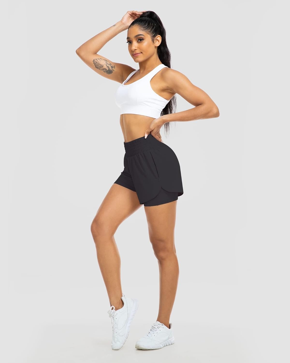 Womens High Waist Running Shorts Athletic Workout Quick Dry Shorts for Women with Pockets Gym Yoga White Summer Shorts