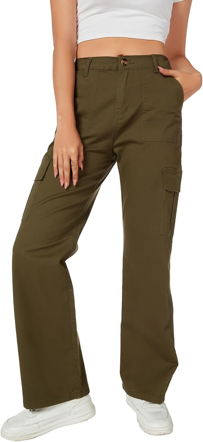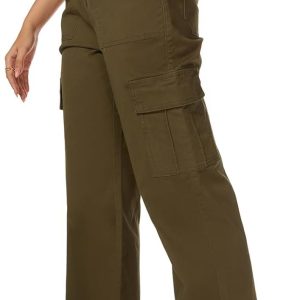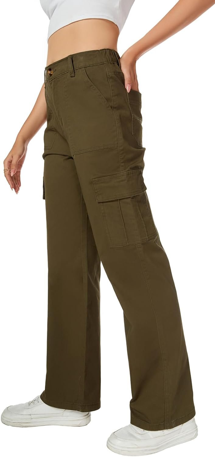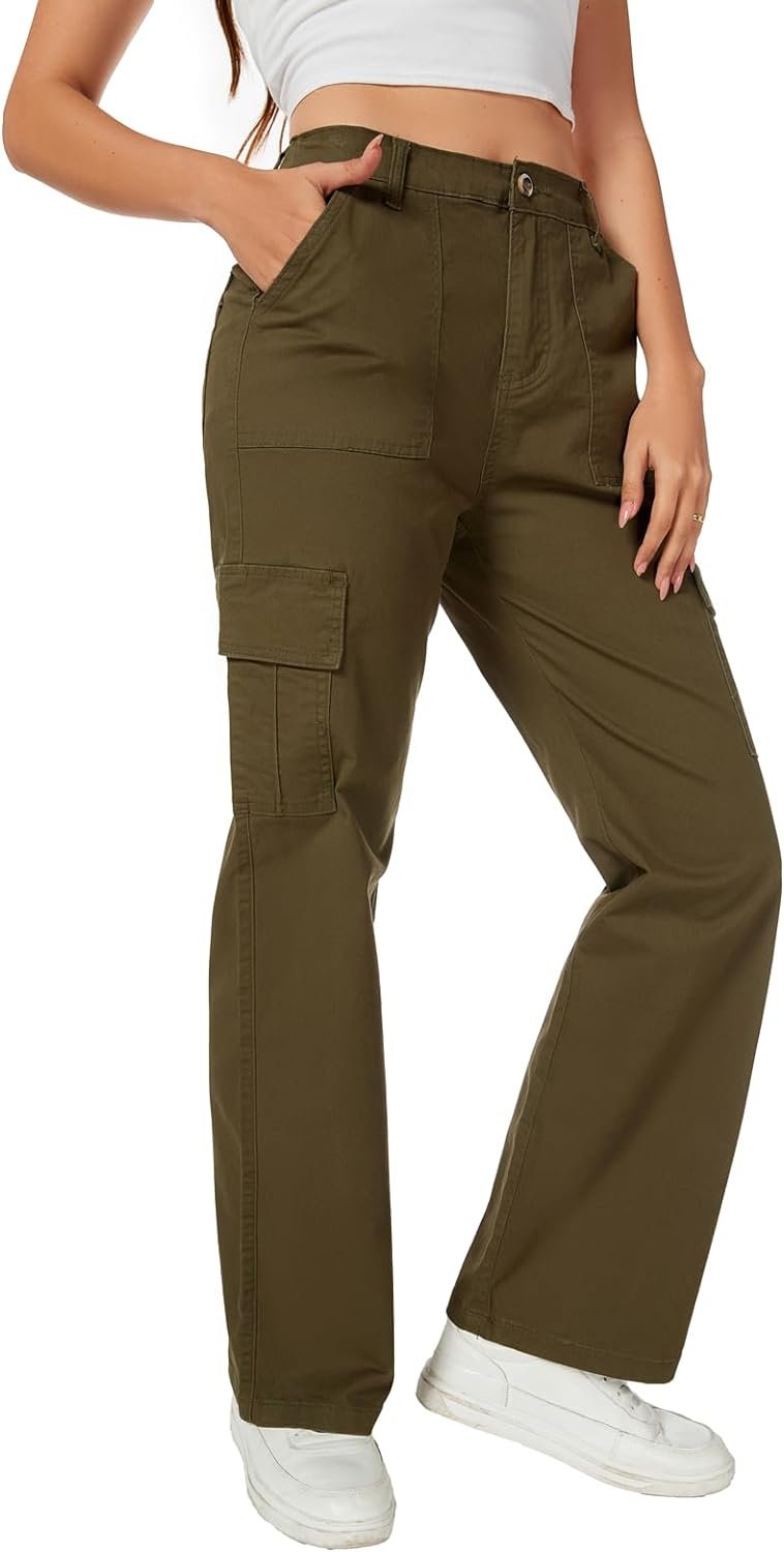 Women’s High Waist Stretchy Cotton Cargo Pants Wide Leg Hiking Tactical Trousers with 6 Pockets
