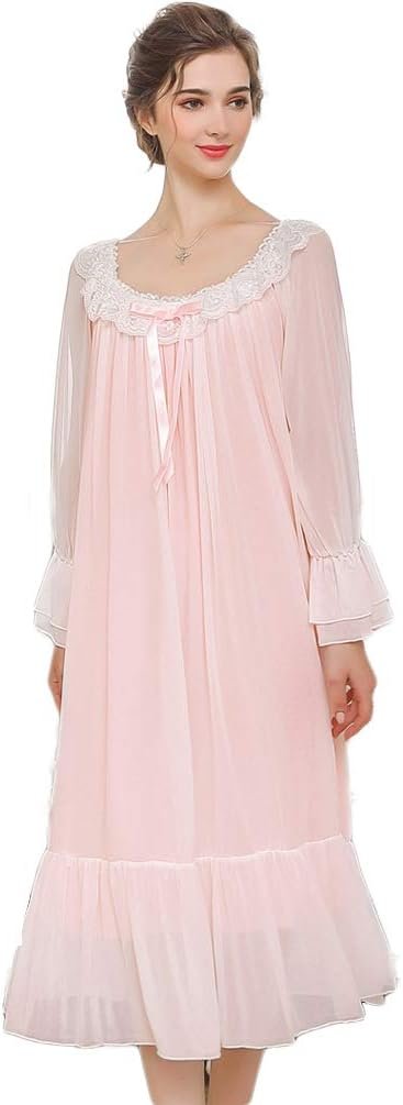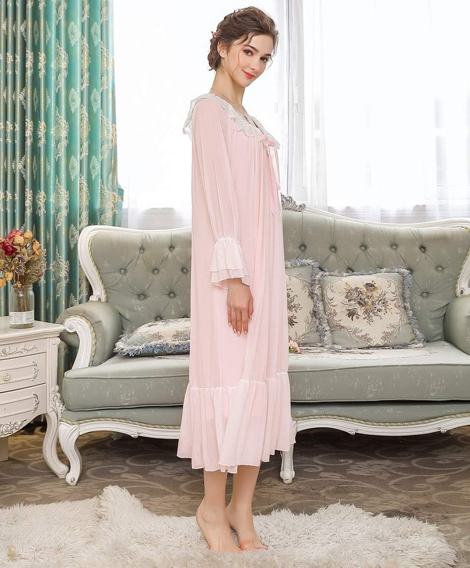 Women’s Long-sleeve Mesh Nightdress Princess Vintage Nightgown Lace Sleepwear Pajamas