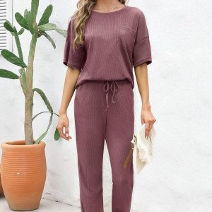 Be the first to review “Womens Pajama Sets Waffle Knit Short Sleeve Shirt with Long Pajama Pants Soft Sleepwear Pj Lounge Sets”