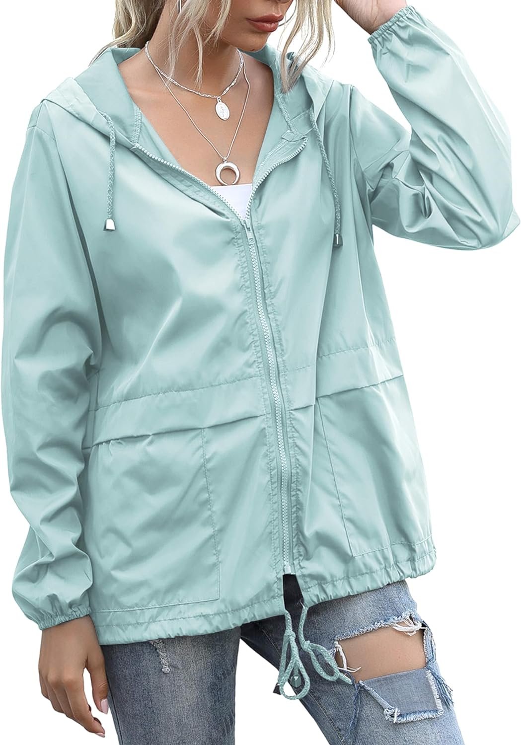 Women’s Raincoats Windbreaker Rain Jacket Waterproof Lightweight Outdoor Hooded Trench Coats S-XXL