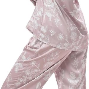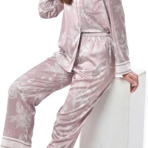 Women’s Silky Satin Pajamas Set Long sleeve and Pants Sleepwear Soft and Comfy Button Down Loungewear Relaxed Fit