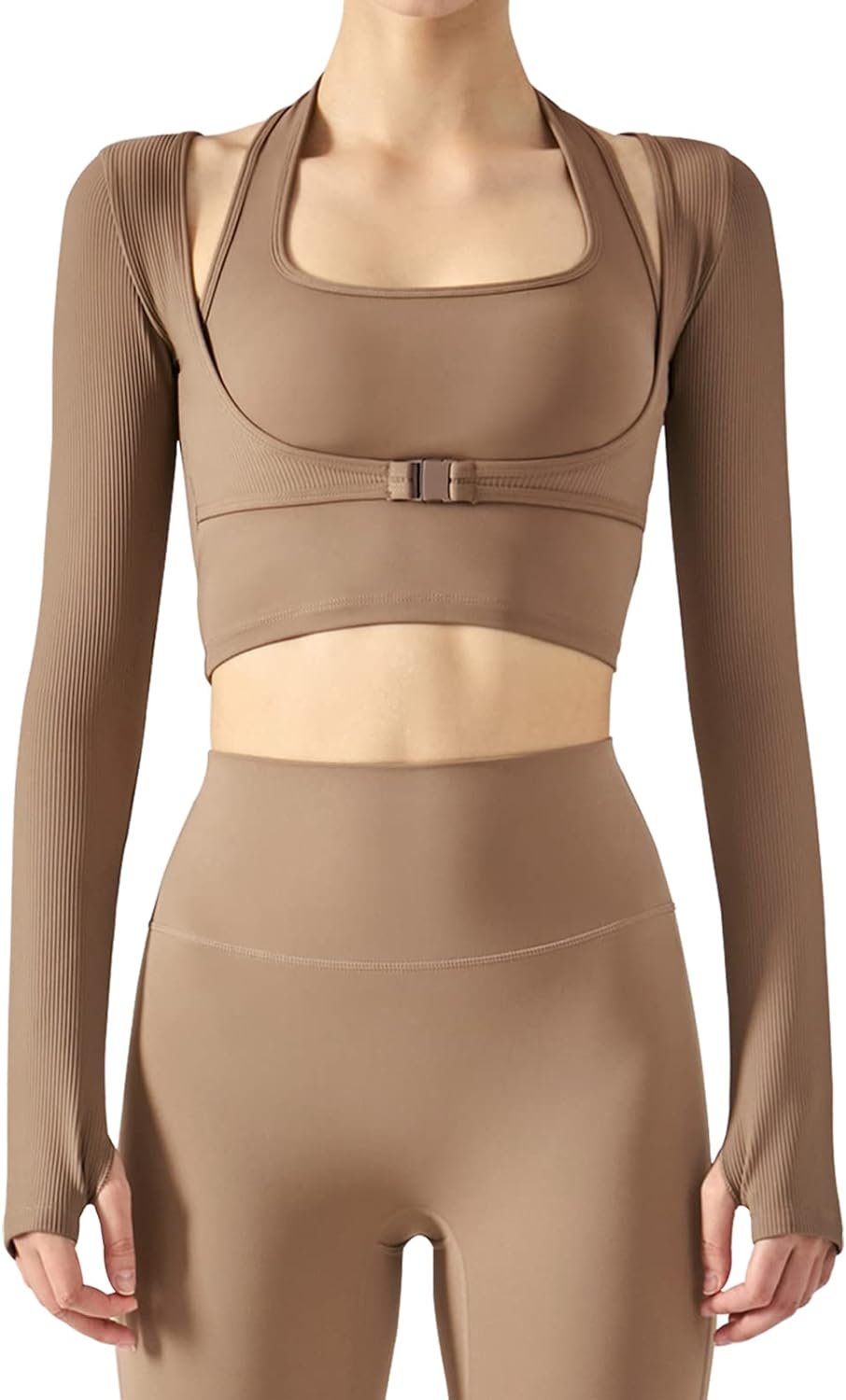 Women’s Stretch Cutout Yoga Sports Jacket Long Sleeve Crop Top T Shirts with Thumb Holes